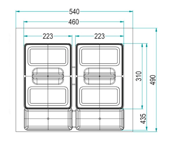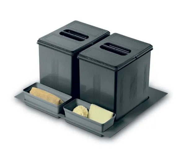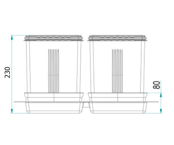 Ведра INOXA в выдвижной ящик 97DB/602 для раздельного сбора отходов в корпус 600 мм (H-230 мм) в выдвижной ящик. Материал:пластик