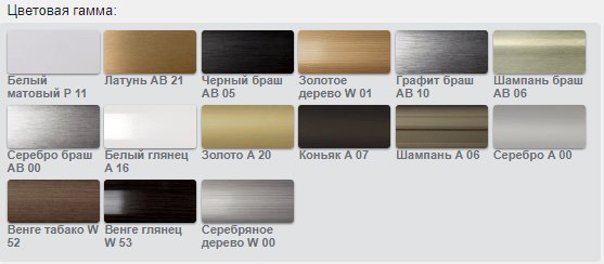 | Цвета: Белый матовый P 11,Черный браш АВ 05,Графит браш AB 10,Шампань браш AB 06,Серебро браш AB 00. 1МП | 179 |