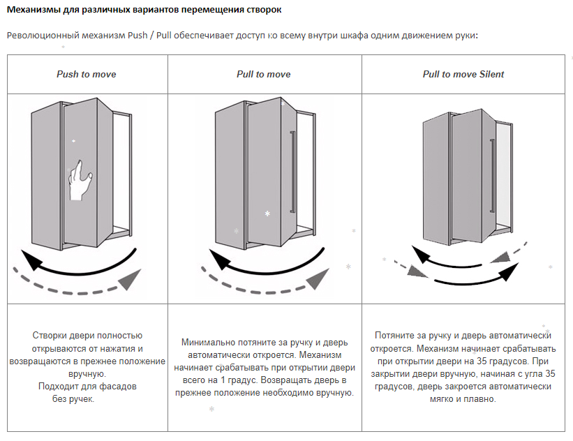 Механизм открывания от нажатия для фасадов без ручек.